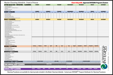 - The INTEGRA Program offers Master Cleaning Schedules, Check Lists and over 200 specific Cleaning Procedures that outline products needed, directions on how to clean and recommended cleaning interval. These are available once logged in as a member to this website.