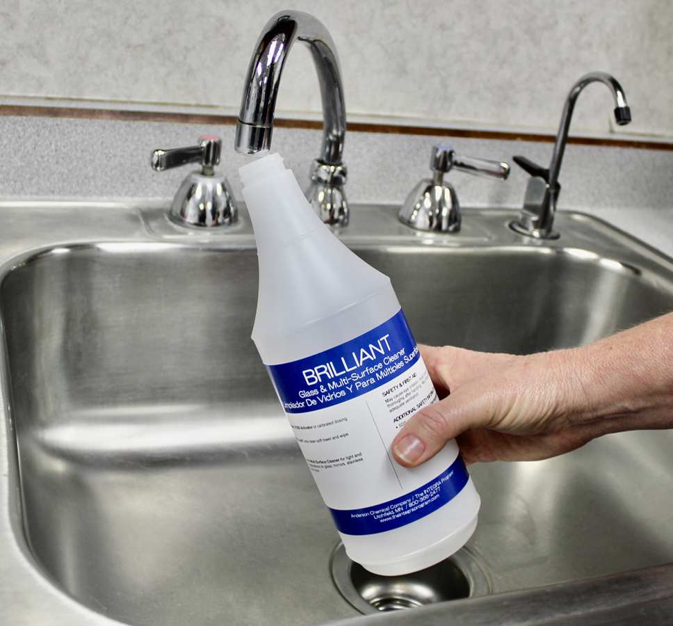 - Dispense appropriate product into labeled spray bottle