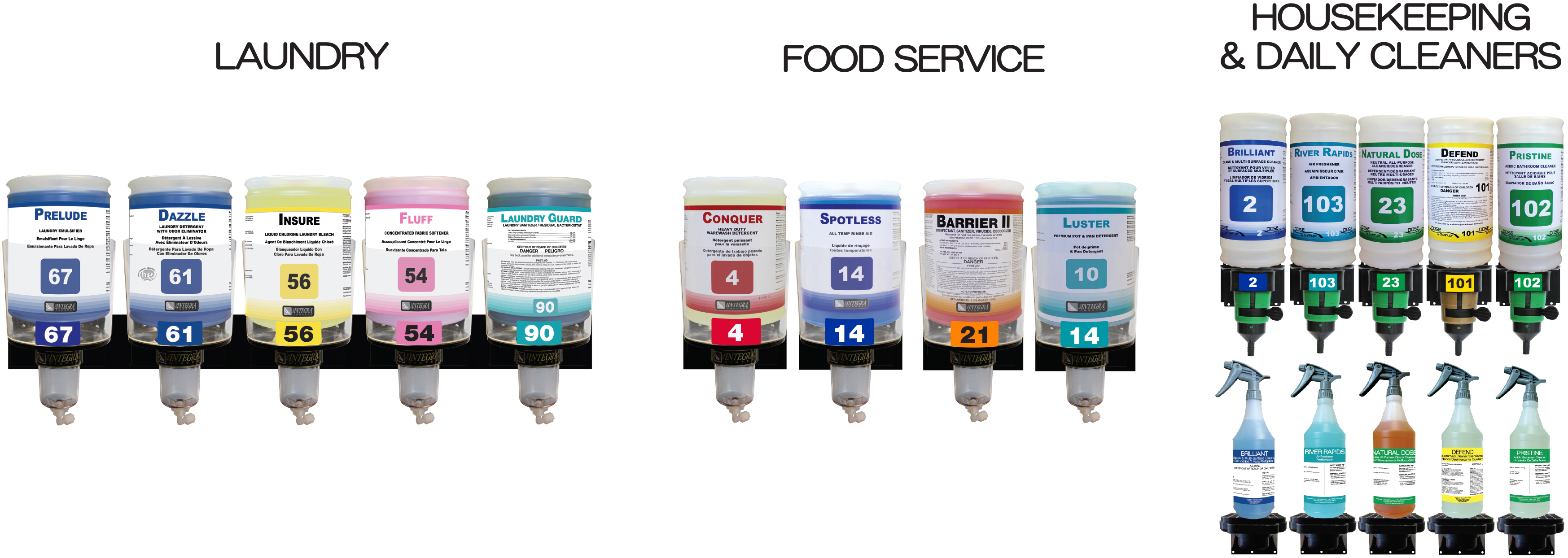 INTEGRA products are made for Laundry, Food Service, as well as Housekeeping and Daily Cleaner Applications.