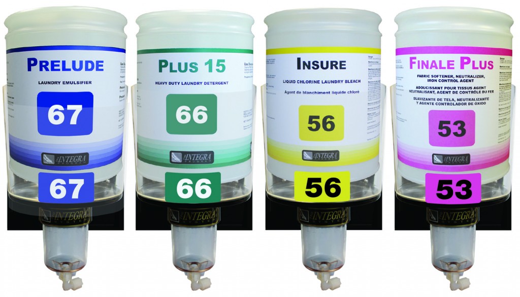 The Integra Laundry 4 Product System uses super concentrated products designed to make this system extremely cost-usage competitive.
