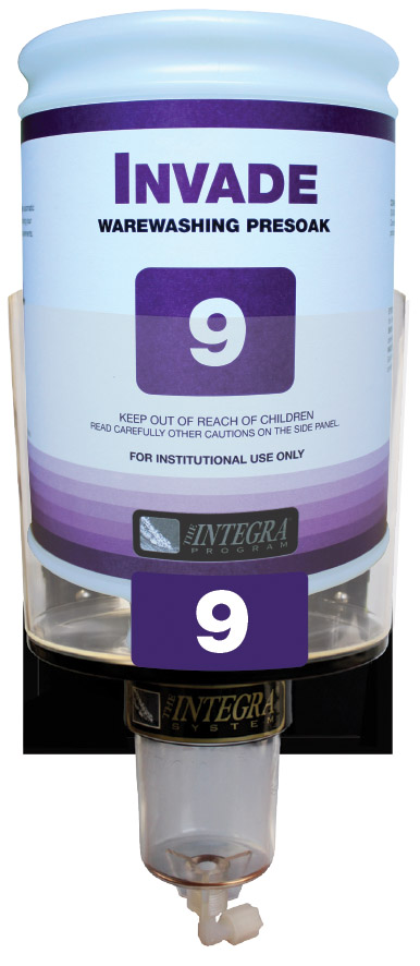 Invade Warewashing Presoak System is designed to remove tough soils from flatware and improve silverware appearance